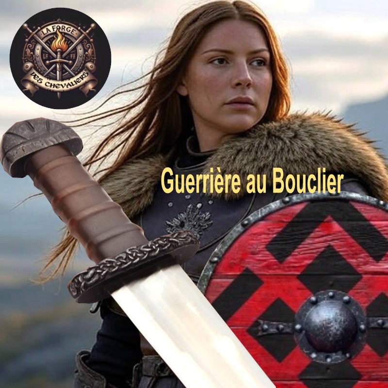 Les Vikings privilégiaient des armes robustes et polyvalentes. L’épée, souvent réservée aux guerriers d’élite, était un symbole de statut. Lagertha, en tant que chef, aurait possédé une épée finement ouvragée, peut-être ornée de motifs nordiques. Le bouclier, rond et en bois, était essentiel pour la défense, tandis que la hache, plus accessible, était redoutable en combat rapproché. Des reproductions de ces armes, réalisées avec un savoir-faire artisanal, sont disponibles chez La Forge des Chevaliers®.