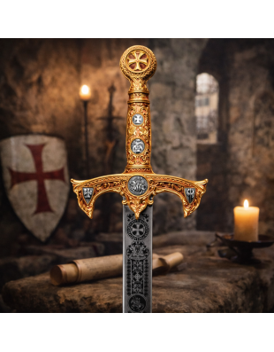 Set de couverts médiévaux en acier doux composé de trois pièces avec pochette. Il comprend une cuillère, une fourchette et un couteau de 17 cm chacun. Inspiré de l’art de la table du Moyen Âge, ce set est idéal pour la reconstitution historique, les repas médiévaux et les événements à thème.